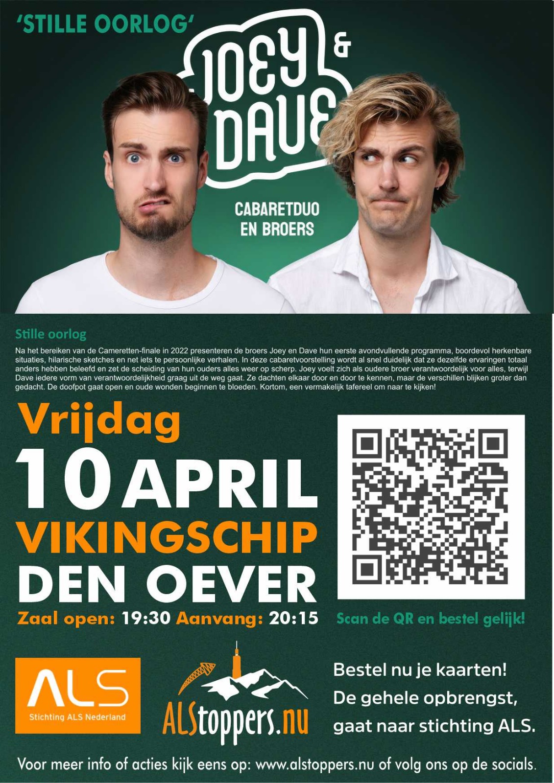 Team ALStoppers is super blij dat het is gelukt om het cabaret duo Joey en Dave naar het Vikingschip-theater te halen voor een benefiet optreden. Opbrengst is voor Stichting ALS Nederland.